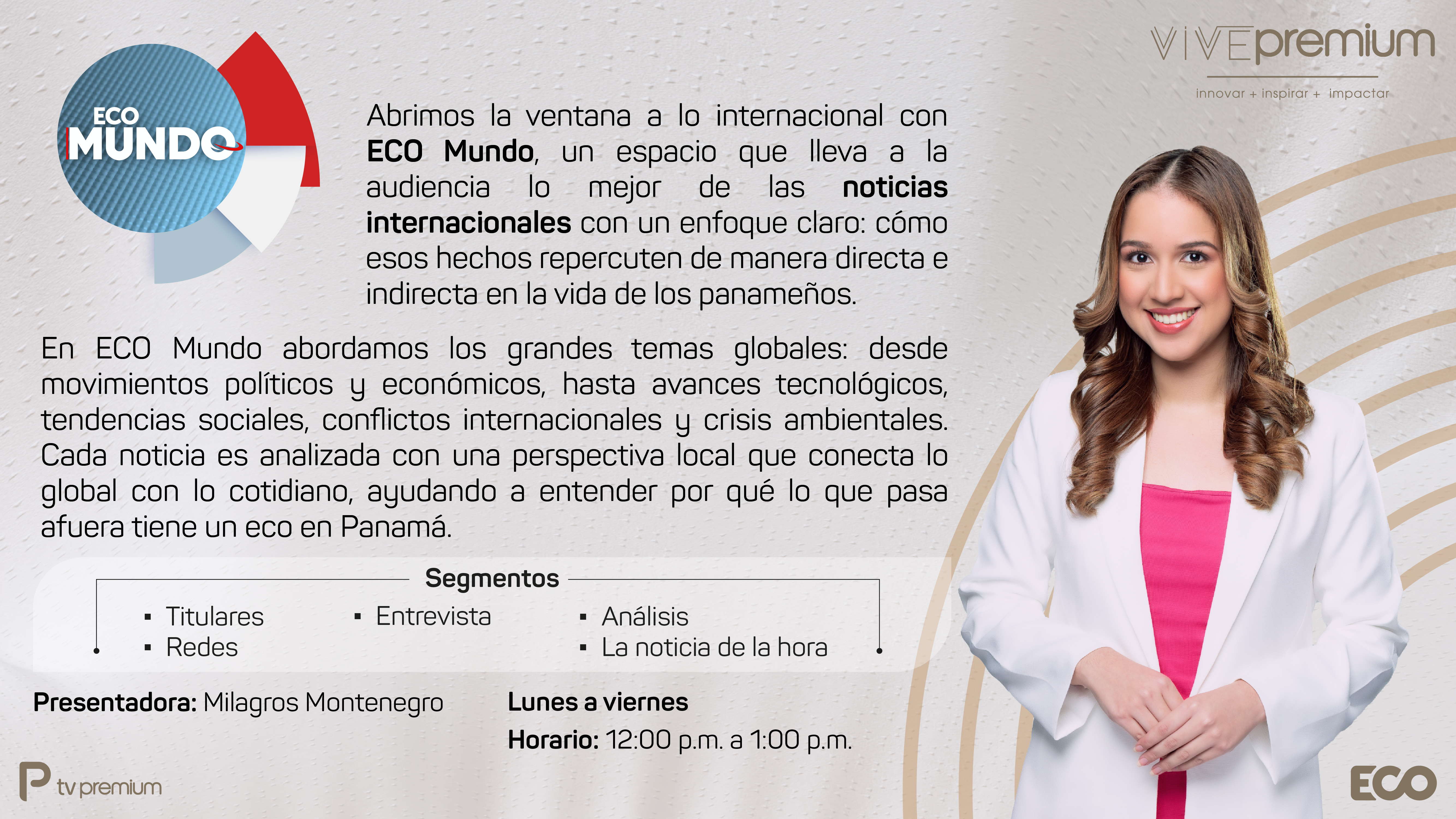 Nuestra programación combina franjas informativas de lunes a viernes en la mañana y en la noche, junto con espacios de entrevistas y análisis en horario estelar los domingos, consolidándonos como el canal de referencia en Panamá.
